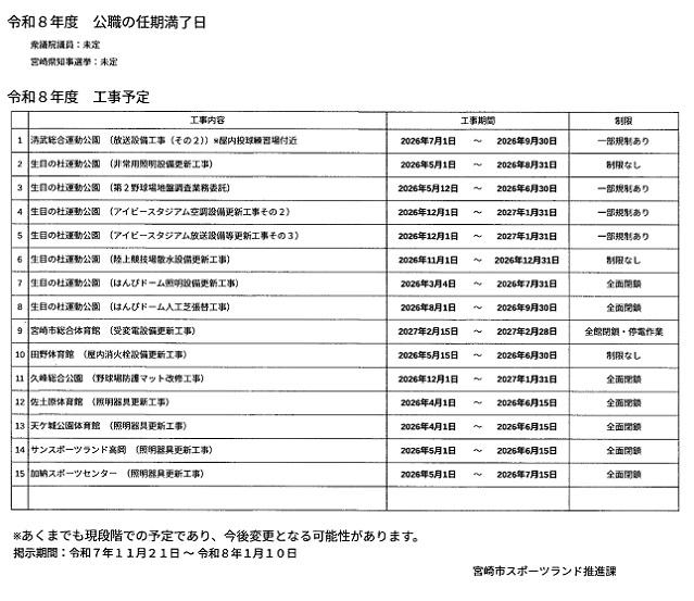 令和8年度工事予定(掲載:2026年1月10日まで)